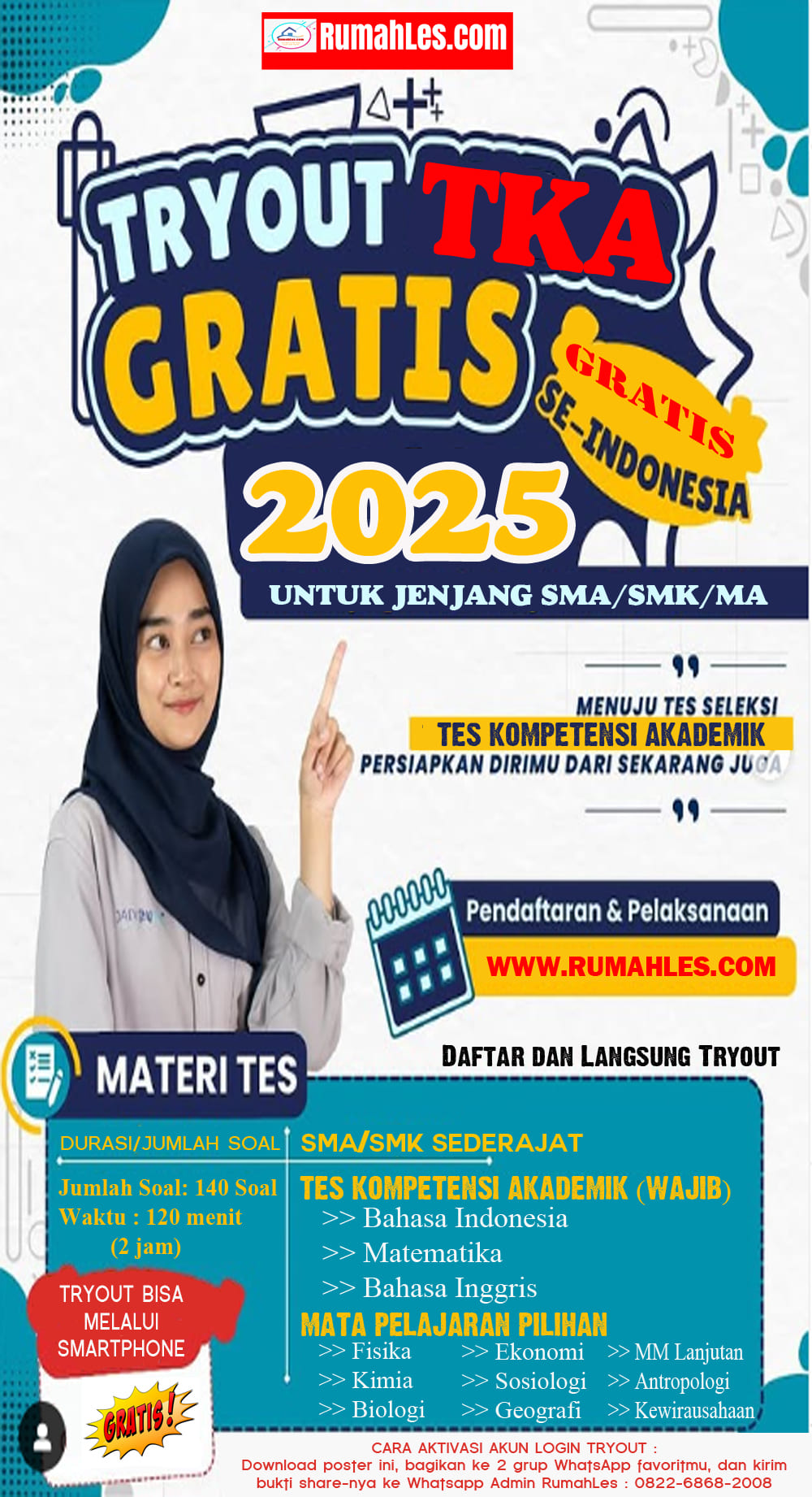 Setelah berhasil mendaftar Online, Bantu Sebarkan Kebaikan dengan membantu teman-teman lainnya untuk meraih kesempatan yang sama dengan membagikan poster Try Out dibawah ini minimal ke 2 (dua) Group WhatsApp atau ke 2 Akun Sosial Media aktif yang kamu miliki.